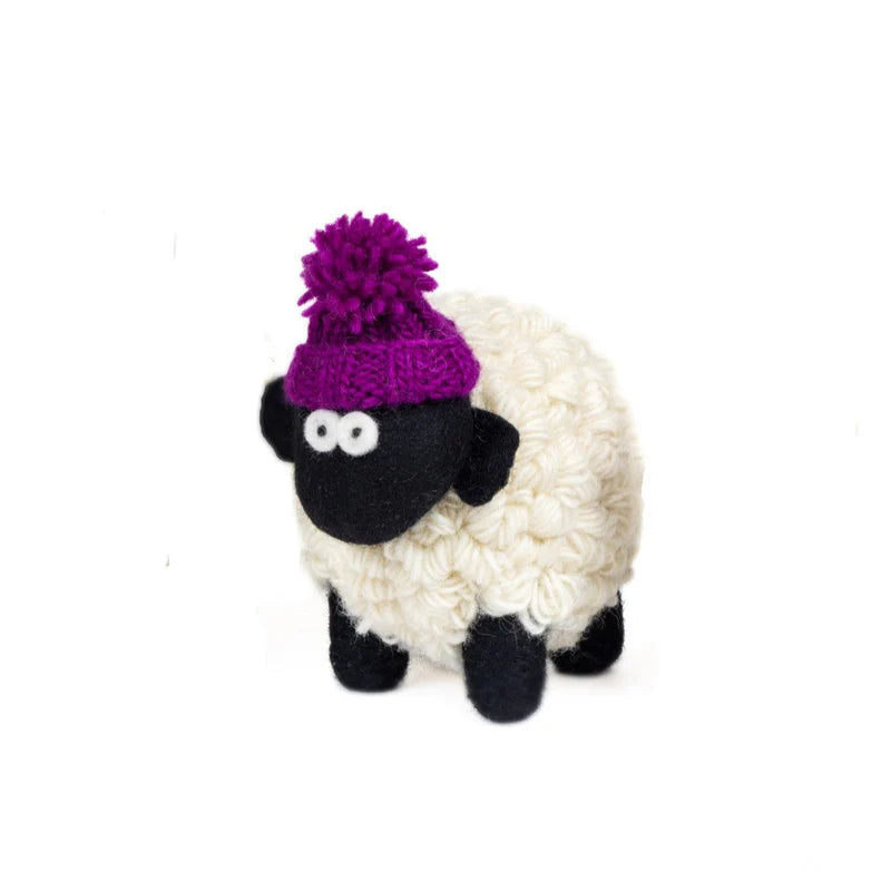 Knitted Sheep Collectible Mountain w/ Purple Bobble Hat